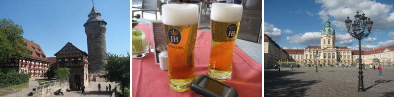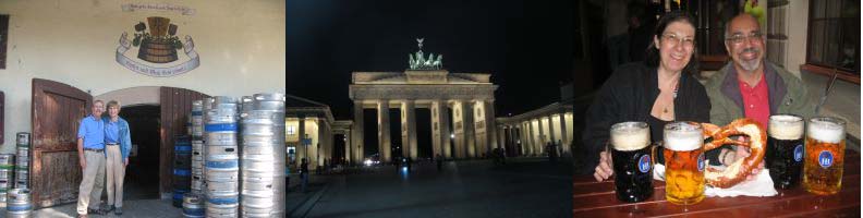 visit…we then stopped for lunch at the courtyard café at the Cecilienhof and next drove back to the Marriott in Berlin. We still had a few hours of daylight so we walked about 15 minutes to Friedrickstrasse to visit Checkpoint Charlie and the 70 meters of the wall that remains as a monument to former divisions. Our next stop on the walking tour was the Gendarmplatz with its restored churches and concert hall. By now it was time for a visit to the Löwenbräu restaurant for a “halber” (1/2 liter). The remainder of the walking tour took us along the Unter den Linden Boulevard where we tried to decide which building were new and which were restorations. The final stop of the day was an outside table at the restaurant of 100 beers on the Alte Potsdamer Strasse…there was an excellent selection of European brews and the menu was well paired for the beverages.