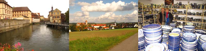 Becky’s niece Jill and her family. We had a pleasant visit with them and learned that after seven years with the Army, they will be returning to Fort Bragg in December with a promotion. Everyone seems to be pleased. From Wiesbaden we started our drive to Bamberg for a 3-day brewery tour in Bavaria. We used our new Garmin navigation device and programmed in the Bamberger Hof hotel as our destination. I did not realize that there are more than one hotel with that name and as Murphy’s Law would dictate I selected the wrong hotel. When we arrived, we immediately realized our mistake but still had 120 kilometers to drive to finally reach Bamberg. We arrived and checked to this wonderful classic Germany hotel and set out to find a pub where we could toast to our successful arrival. Bamberg is a wonderful old Unesco preserved Medieval city with ample sites to engage even the casual tourist not to mention the nine resident breweries. We stopped for a casual meal at a restaurant attached to the hotel; by this time we were not really interested in fine dining but just a nice bed to start the recovery of jet lag from the transatlantic flight.