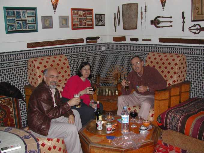 Celebrating our arrival in Fes in Steve & Robin's Suite
