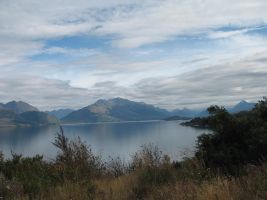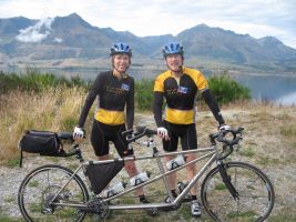 We have flown right over Monday as we crossed the International Date Line…seems like we have been robbed a day of our vacation. As we arrived at the Queenstown airport we were met by Bill and a host of drivers and baggage handlers to help us to find the ground transportation. The weather was cool in the 60’s but through the scattered clouds we could see the beautiful mountains that surrounded this area. Six tandem teams arrived in Queenstown approximately at the same time…we boarded the bus for the one hour ride to the Oakridge resort at Wanaka traveling by way of the Crown Range summit road over some serious switchbacks and steep climbs. We did not realize at the time that we would be returning by the same route the next day but on a bicycle. The pass is 1076 meter high and the road is only two lane without shoulders or passing lanes. The mountains are not wooded and the area is really not populated after leaving Queenstown. We arrived at the Oakridge Lodge, collected our room keys and found our room. The resort has a series of heated pools which looked very inviting after traveling for 24 hours, but our schedule was so full there was no time to enjoy the thermal baths. We immediately began to assemble our bike…this time we had no problems and were ready to ride in less than an hour. We changed into riding clothes and rode into Wanaka which was only 2 miles away. This is a quaint resort on the shore of Lake Wanaka. We found a good bike shop where we bought CO2 cartridges for tire inflation. The FAA prohibits compressed gas containers on airplanes so we have to buy new cartridges every time we fly the bike. We returned back to the lodge in plenty of time to shower and change for the 6:30 wine tasting followed by dinner. Bill and Jan had arranged for one of the local wine makers to supply the wine and explain a bit about New Zealand wines as well as the wine he presented for the evening. The happy hour wine was a sparkling wine made from 80% pinot noir and 20% chardonnay. It had slight blush tint and was a little sweet but pleasant enough…after 24 hours of travelling my opinion may have been influenced by the need to celebrate our safe arrival and unwind from the trip. The dinner that followed was classic. It began with a tiger prawn cocktail followed with a main course of baked Akaroa salmon crusted in black sesame seeds, roasted potatoes and sauté baby spinach with champagne crème. The wines presented with the meal were a Riesling and a Sauvignon Blanc…both were pleasant. For desert they presented a selection of sorbets with fresh summer berries and almond praline. All of this was followed with a cheese plate offering Kapiti Aorangi and Tutermoana and a fresh bottle of award winning Pinot Noir. It had been a while since we had enjoyed a good meal and this was certainly a great beginning for this vacation.
